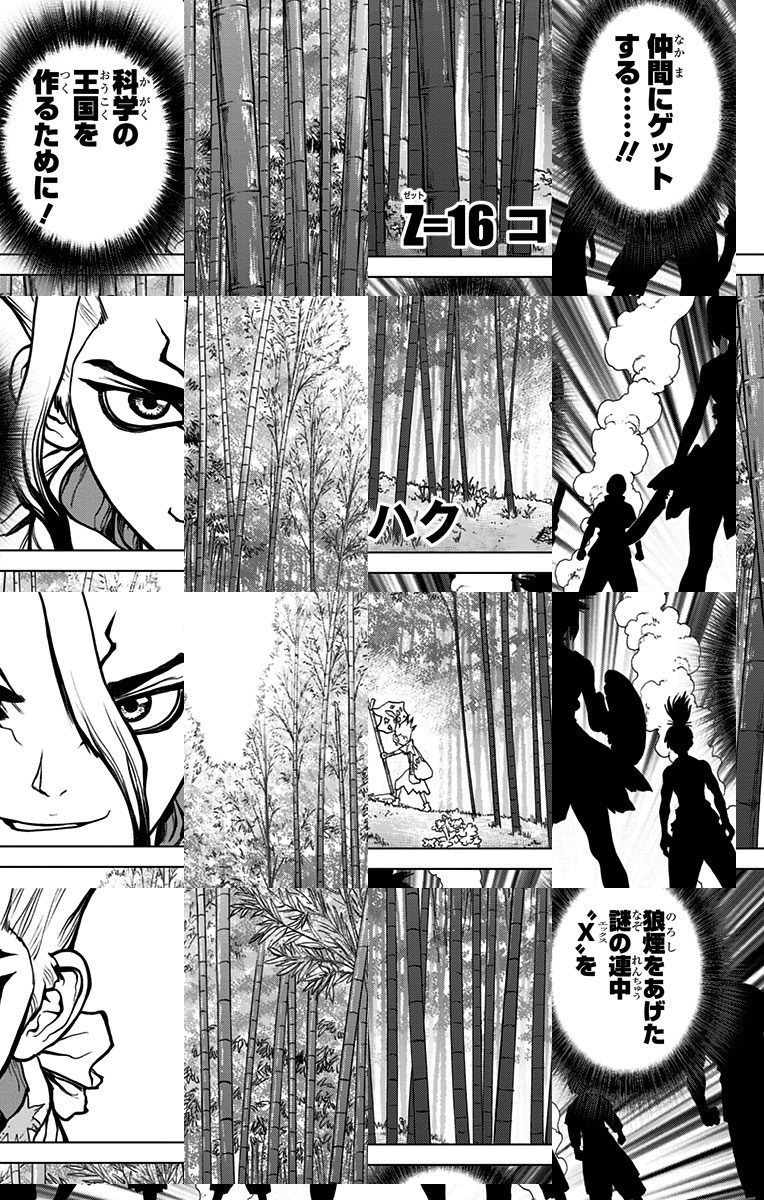 <完結済み>一瞬にして世界中すべての人間が石と化す、謎の現象に巻き込まれた高校生の大樹。数千年後——。目覚めた大樹とその友・千空はゼロから文明を作ることを決意する!!