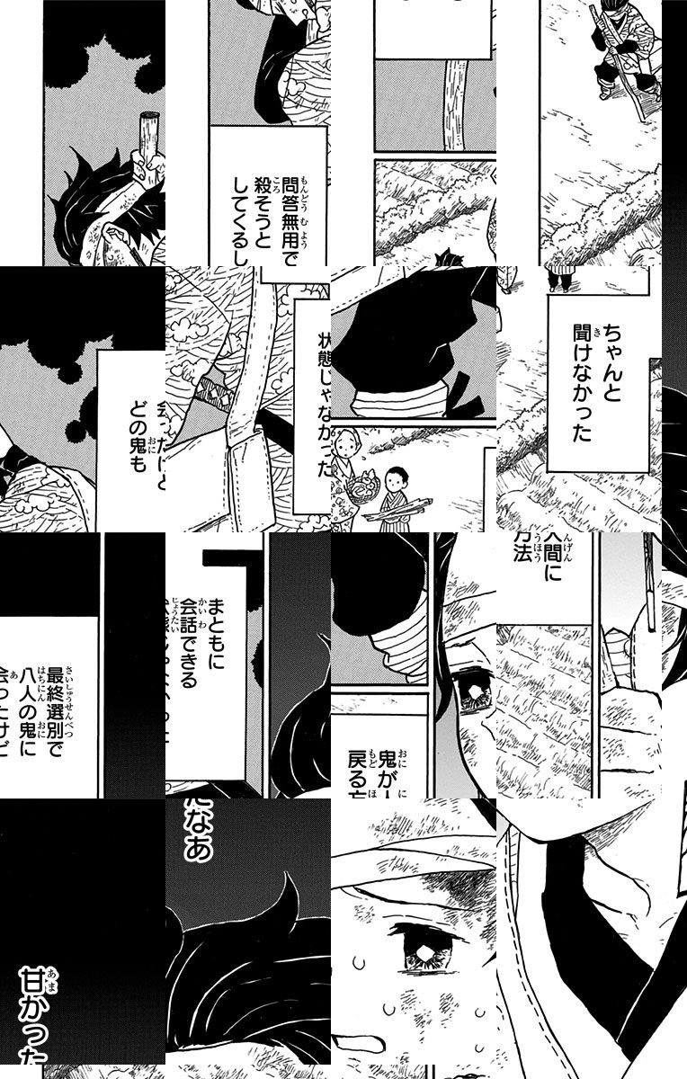<完結済み>ある日炭治郎が家に帰ると家族は鬼に皆殺しにされ、唯一生き残った妹・禰豆子も鬼へと変貌していた。家族を殺した鬼を討ち、そして禰豆子を元に戻すため、二人は旅立つ!!