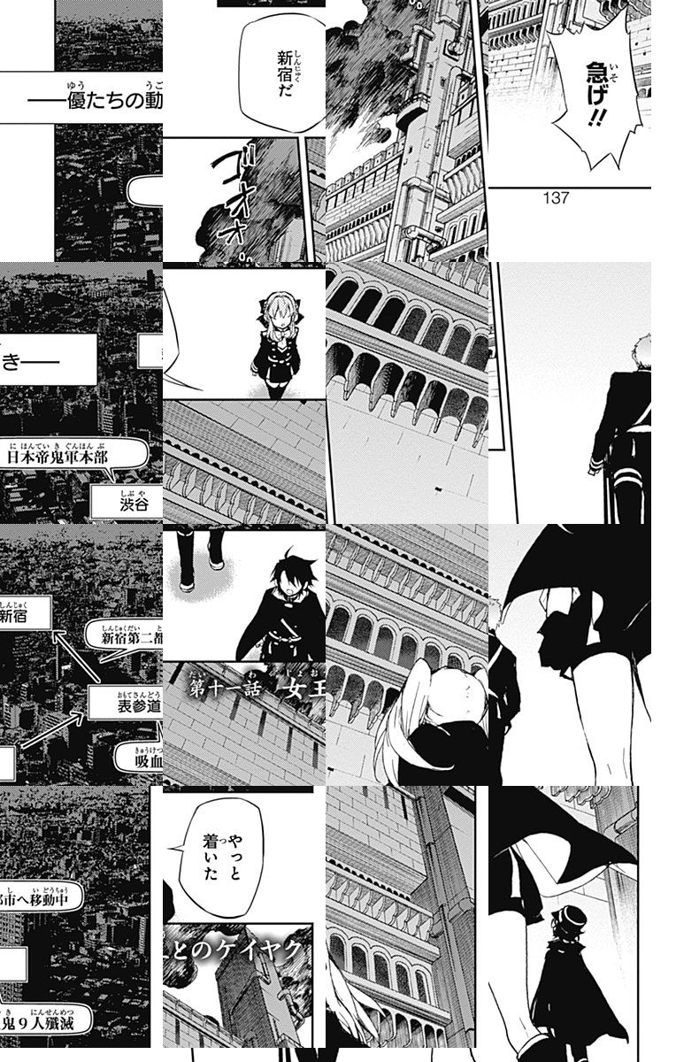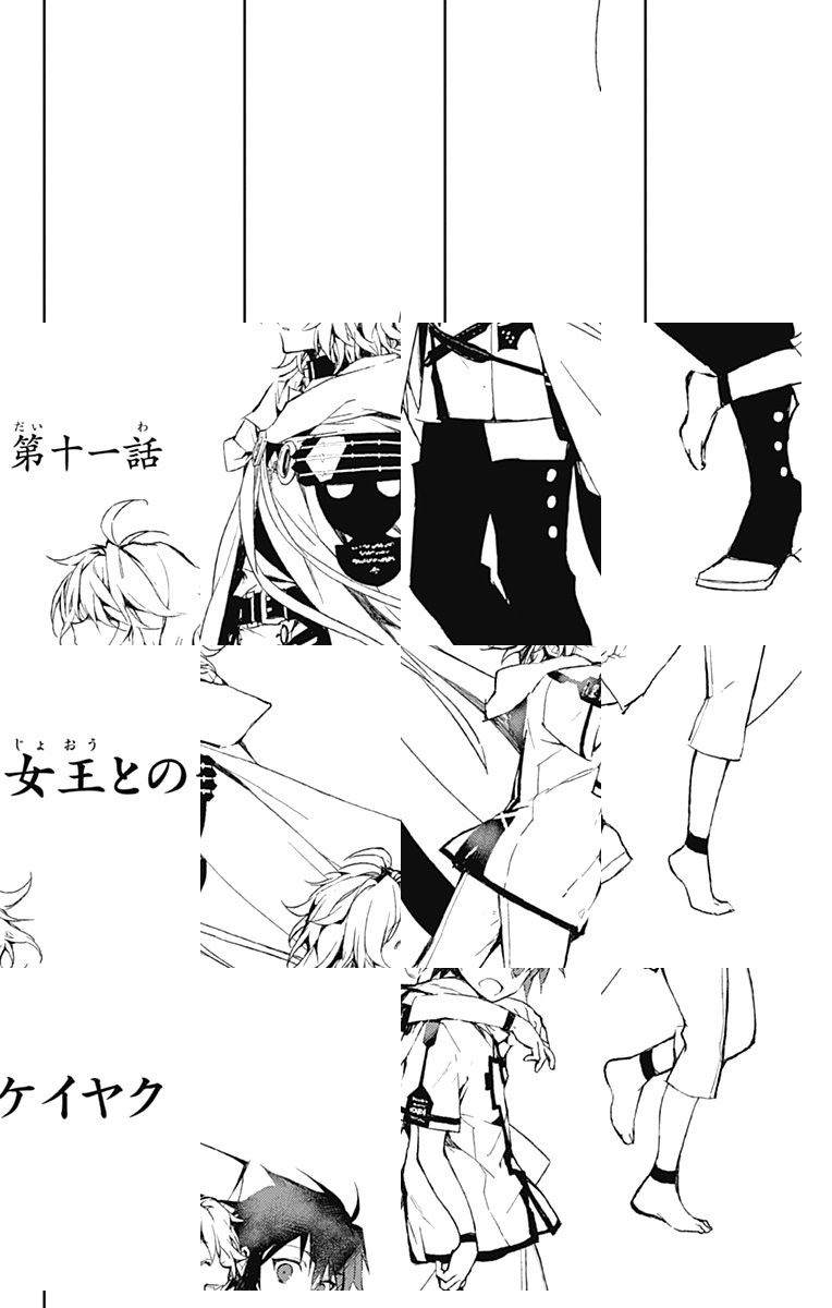 未知のウイルスにより人類は壊滅、子供だけが生き残り、地下都市で吸血鬼に支配されていた。百夜優一郎は仲間たちの犠牲のもと、ただ一人脱出に成功、復讐を誓う。