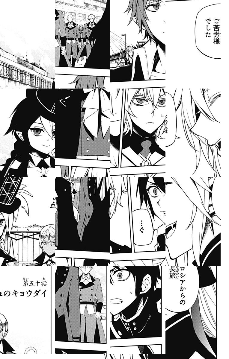 未知のウイルスにより人類は壊滅、子供だけが生き残り、地下都市で吸血鬼に支配されていた。百夜優一郎は仲間たちの犠牲のもと、ただ一人脱出に成功、復讐を誓う。