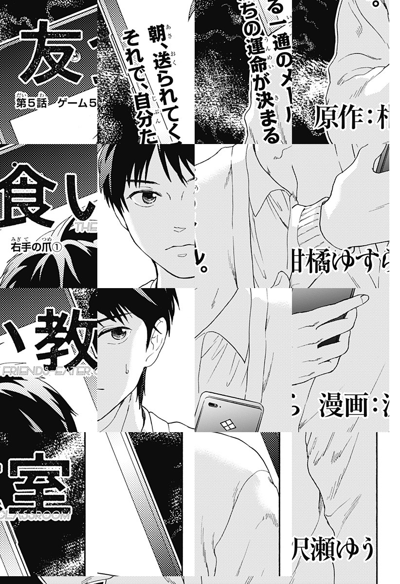<完結済み>桜坂高校1−Aの生徒たちは、『友食いゲーム』と呼ばれる理不尽なゲームに巻き込まれる。生き残る条件は、友達の身体を食べること——!?戦慄のカニバリズム学園ホラー開幕!! [JC全4巻発売中]