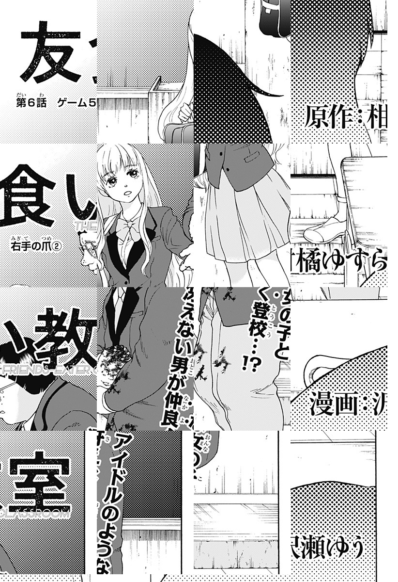 <完結済み>桜坂高校1−Aの生徒たちは、『友食いゲーム』と呼ばれる理不尽なゲームに巻き込まれる。生き残る条件は、友達の身体を食べること——!?戦慄のカニバリズム学園ホラー開幕!! [JC全4巻発売中]