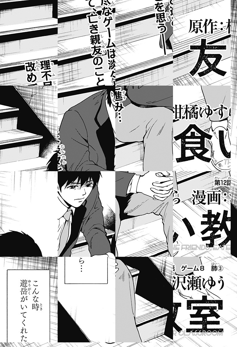 <完結済み>桜坂高校1−Aの生徒たちは、『友食いゲーム』と呼ばれる理不尽なゲームに巻き込まれる。生き残る条件は、友達の身体を食べること——!?戦慄のカニバリズム学園ホラー開幕!! [JC全4巻発売中]