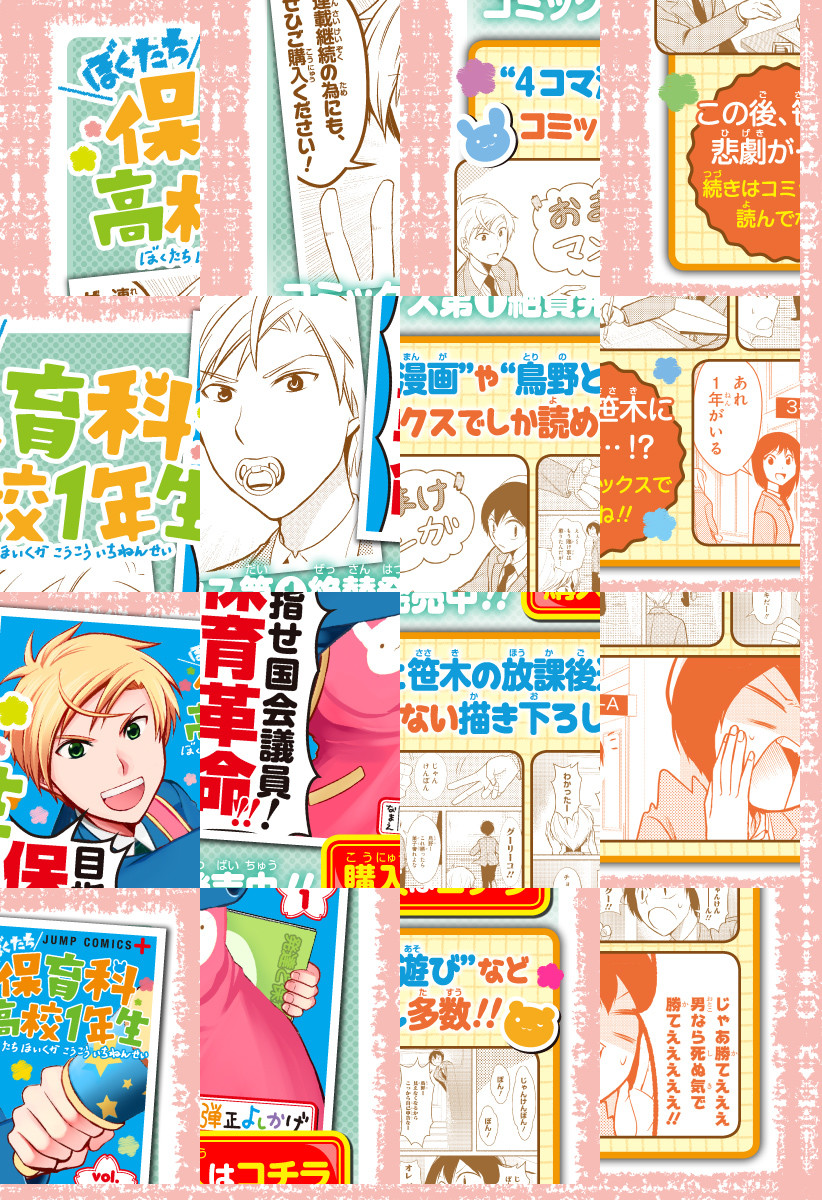 <完結済み>低身長を気にする現代っ子・笹木は入学した保育科の圧倒的な男女比に尻込みしていた。そんな彼の前に、国会議員を目指すちょっと変わった男・鳥野が現れて…!?保育科に通う男女の恋に煌き、学業に燃える青春保育科コメディ!! [JC全3巻発売中]