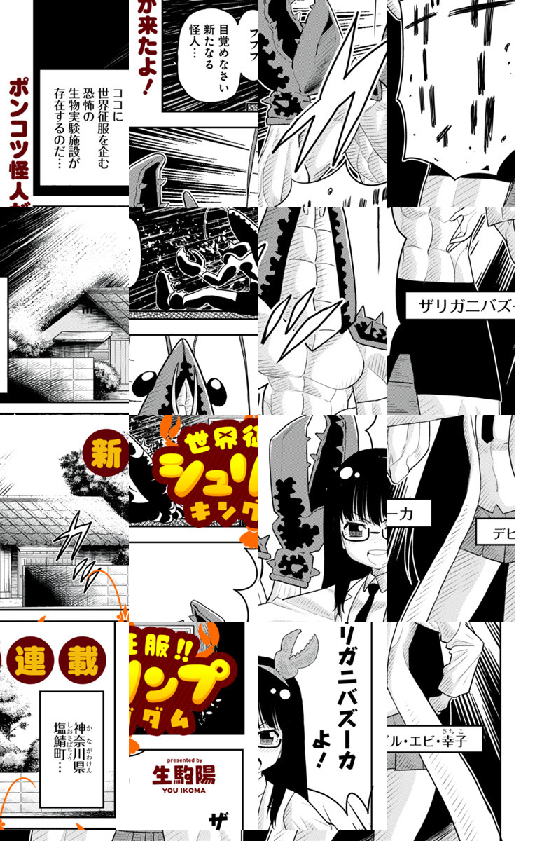 <完結済み>博士も怪人もポンコツな上に、貧乏でお人好し…。世界征服なんか絶対できない悪の組織“シュリンプキングダム”の普通の日常を描いた、ほんわか・おバカコメディー。こんな悪の一味、近所にいたら友達になれそうザーリザーリィ! [JC発売中]