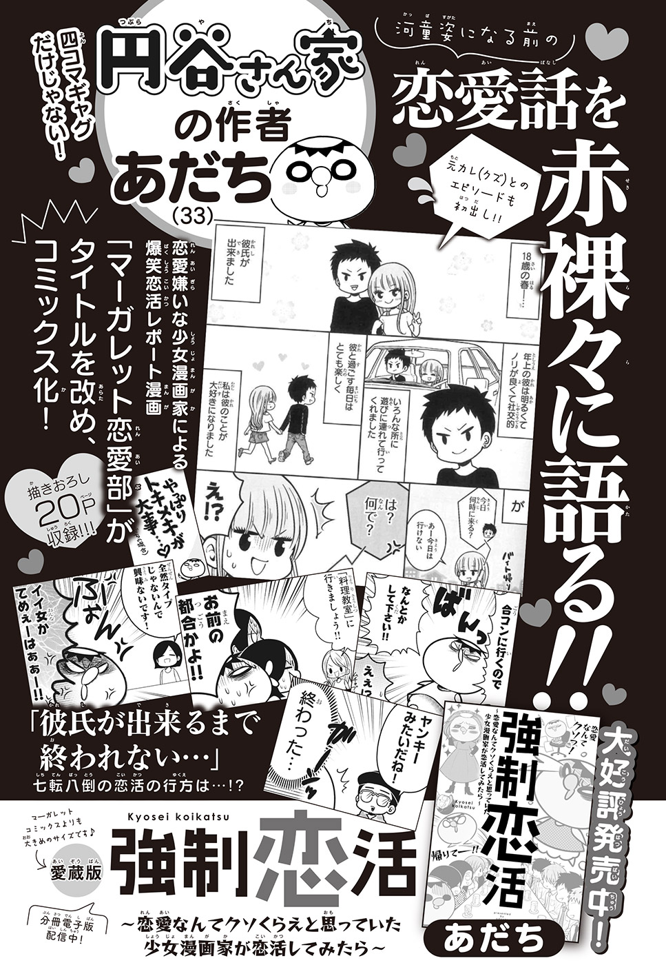 <完結済み>少女漫画誌「マーガレット」で連載しているのに、恋から逃げてひねくれていた漫画家・あだち。合コン・婚活パーティー・マッチングアプリを無理矢理やってみたら…!? 33歳独身実家暮らし少女漫画家の爆笑レポート漫画!