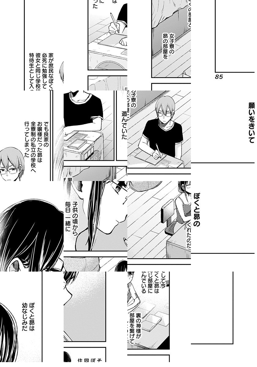 <完結済み>名門私立高校に通う、家柄も容姿も成績も完璧お嬢様・昴。彼女を追いかけて何とか同じ学校に入った幼馴染の主人公。いつしか遠くなった2人の距離は、ある「おまじない」で急接近して…? 奇才・岡本倫と新鋭・横槍メンゴの異色タッグが贈る、自制心崩壊系純愛エロコメ開幕。