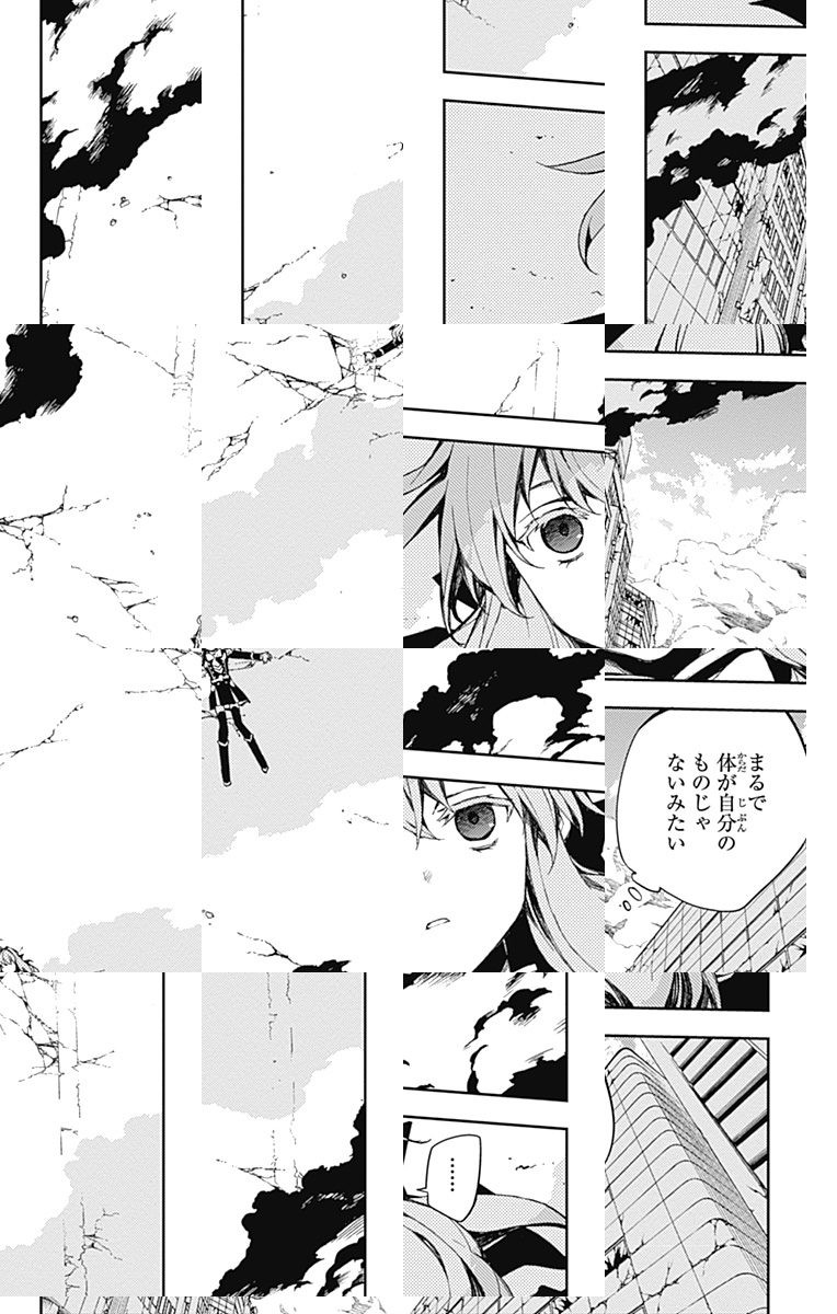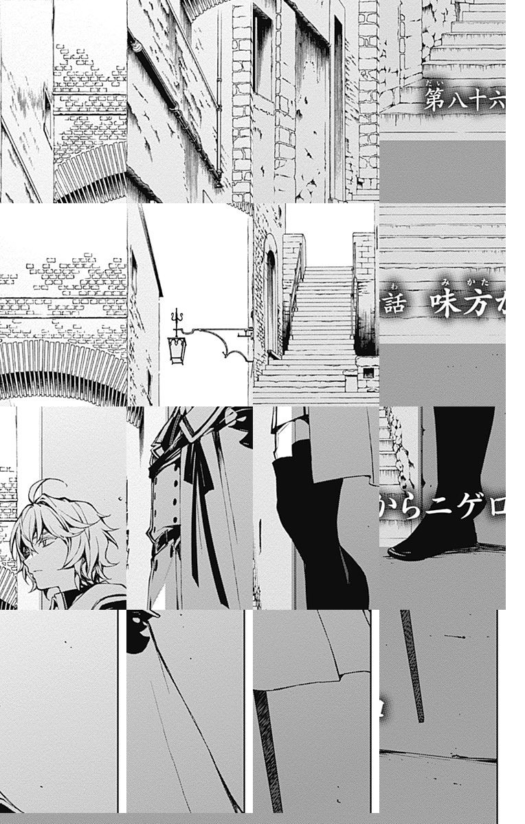 未知のウイルスにより人類は壊滅、子供だけが生き残り、地下都市で吸血鬼に支配されていた。百夜優一郎は仲間たちの犠牲のもと、ただ一人脱出に成功、復讐を誓う。