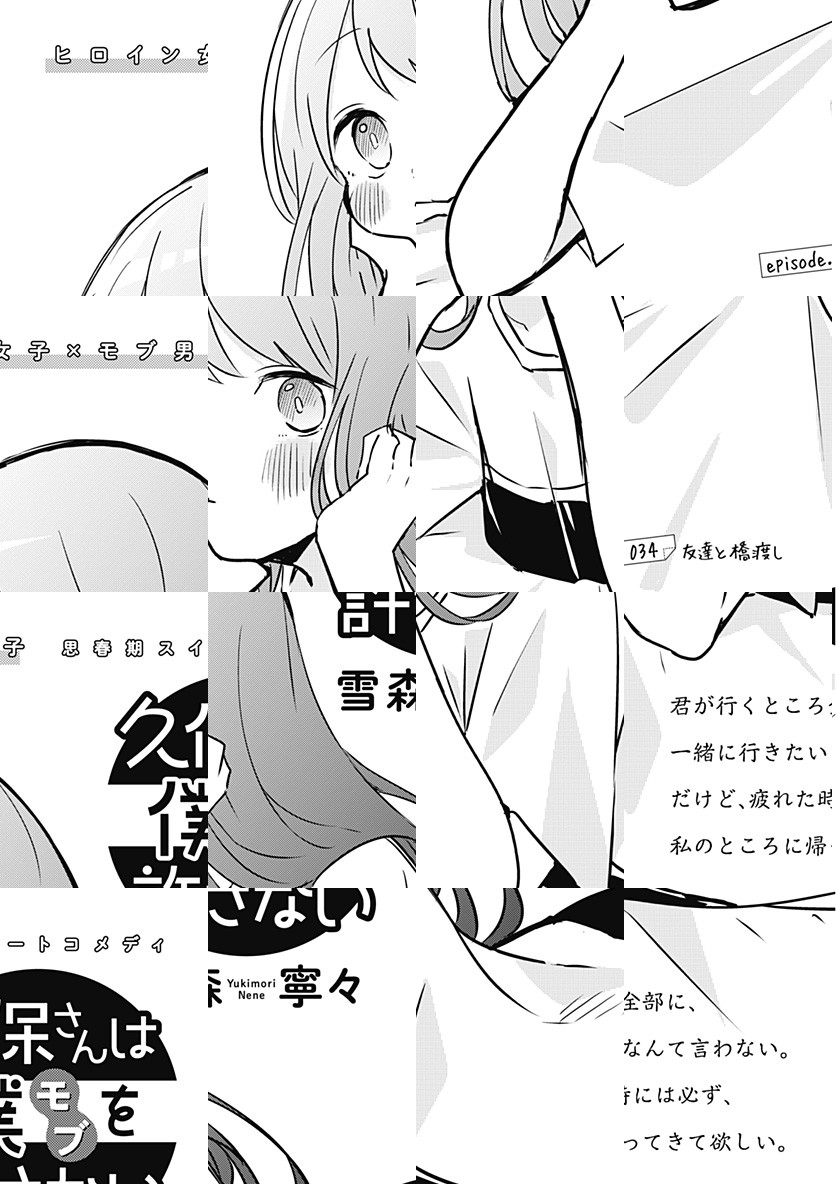 <完結済み>各種動画配信サイトにてTVアニメ好評配信中! 高校1年生・白石純太は隣にいても気づかれない、存在感ゼロの“モブ男子”。ところがクラスメートの“ヒロイン級”美少女・久保さんだけは彼を目ざとく見つけて、今日もちょっかいをかけにやってくる――。誰だって誰かの特別になれる。でもその感情に「恋」と名が付くには、まだ二人は少しだけ幼い。“ラブコメディ”の2歩手前、ヒロイン×モブの“思春期スイートコメディ”!!