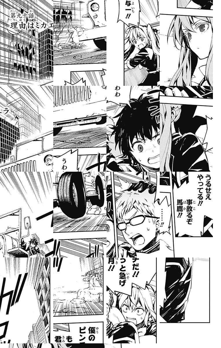 未知のウイルスにより人類は壊滅、子供だけが生き残り、地下都市で吸血鬼に支配されていた。百夜優一郎は仲間たちの犠牲のもと、ただ一人脱出に成功、復讐を誓う。