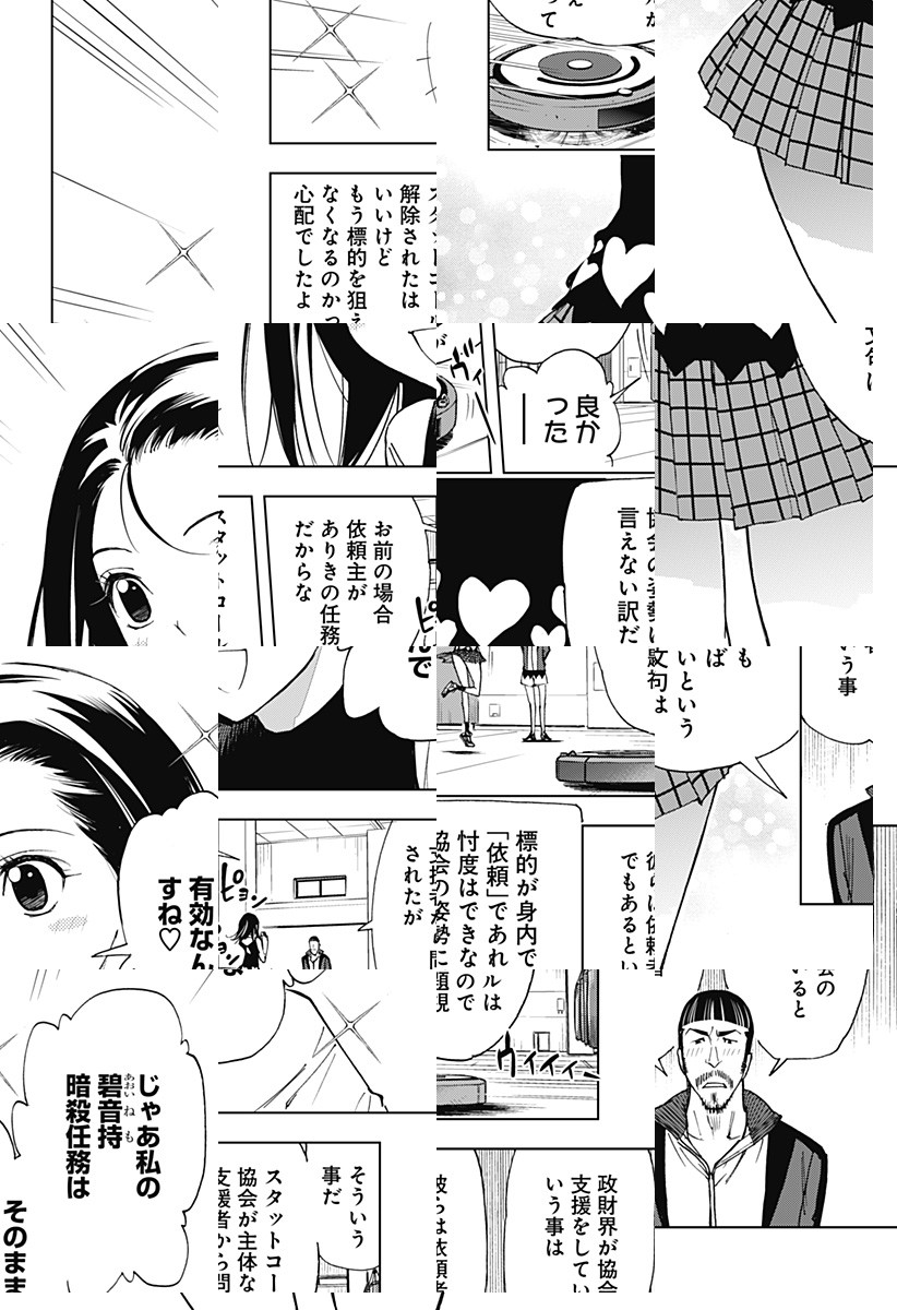 日本屈指の大企業の御曹司・碧音持(あおい ねも)は命を狙われていた。彼を狙う殺し屋の名前は赤海きるる。この暗殺は仕組まれたものだった――全ては碧音持自身によって!美しい彼女に一目惚れした碧は、もう一度会いたい、もう一度触れ合いたいという一心で、自らの暗殺を彼女が所属する組織に依頼したのだった…。 [JC5巻発売中]