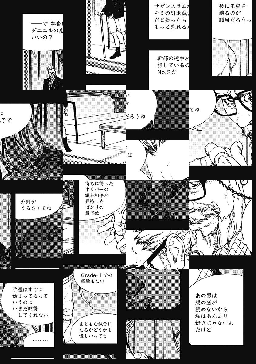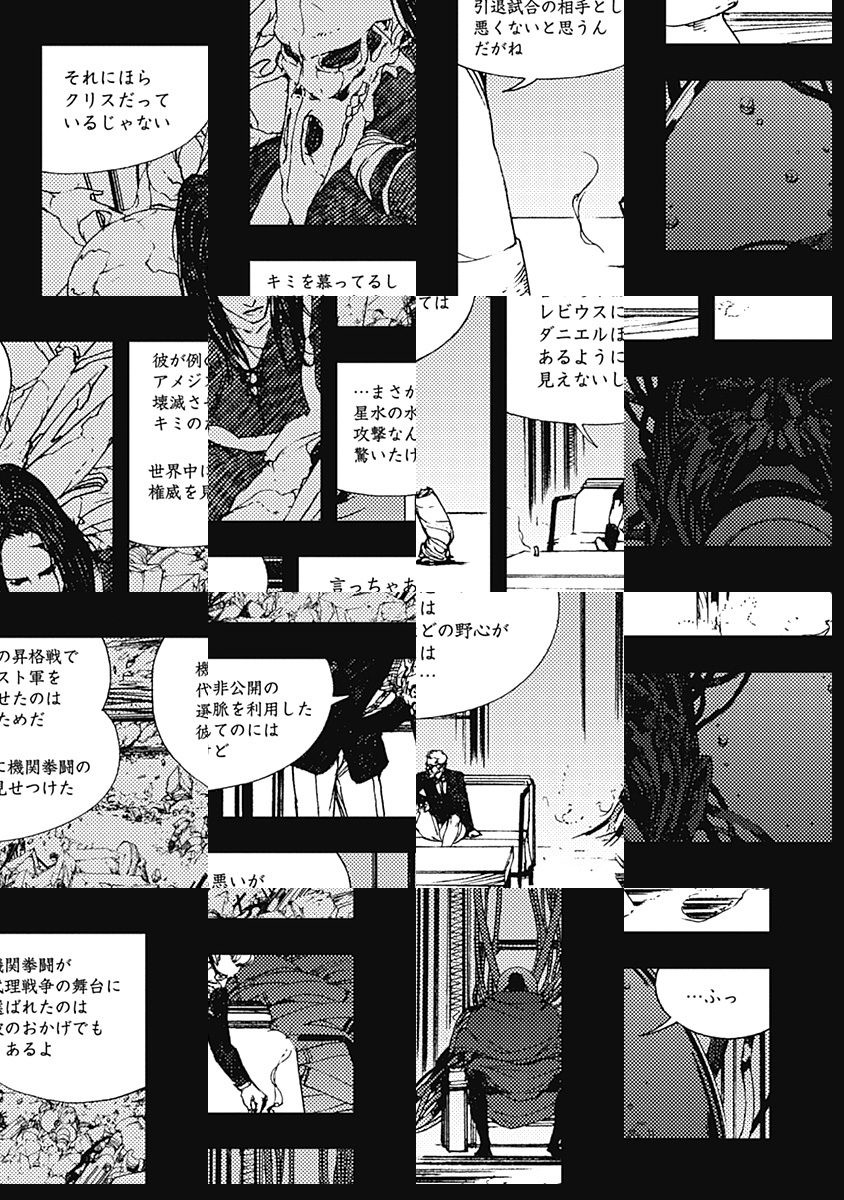 <完結済み>人体と機械を融合させた究極の格闘技—機関拳闘。その若き闘士、レビウスは、ライバルのヒューゴを撃破した謎の美少女兵器A.J.との昇格戦に勝利し、ついに頂上リーグGrade-Iに登りつめる。しかしそのダメージは大きく、1年もの間、生死の境をさまようが、その危機を救ったのが…!? レビウスの“妻”だと名乗る少女闘士、ナタリアも登場し、格闘技の頂上バトルはいきなりの最高潮を迎えた!!