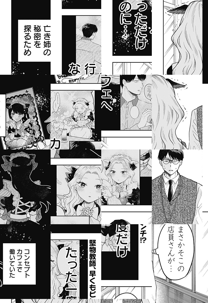 <完結済み>ド真面目な高校教師・猫門。姉を亡くし一人で暮らす彼は、ある日偶然メイド服を着た姉のチェキを見つけてしまう。姉の秘密を探るためコンカフェに出かけた猫門は、鶴子と名乗る少女と出会い…!?[JC全5巻発売中]