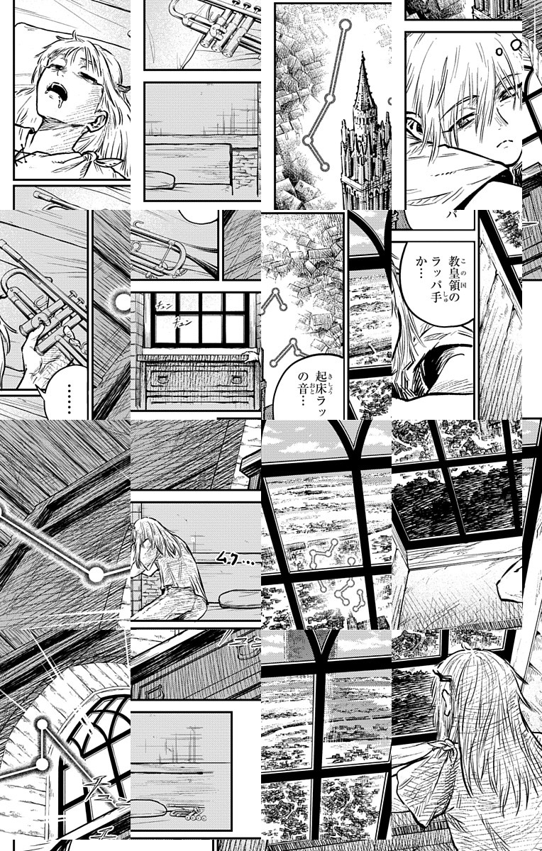 樹木暦1294年。音が“見える”ラッパ手の少年・リュカは傭兵団に属しながらも戦争を嫌い、楽師になる事を夢見ていた。しかしある日、「枝憑き」と呼ばれる力が発現し、彼の運命は大きく動き出す――。巨弾“軍記ファンタジー”堂々開幕!!