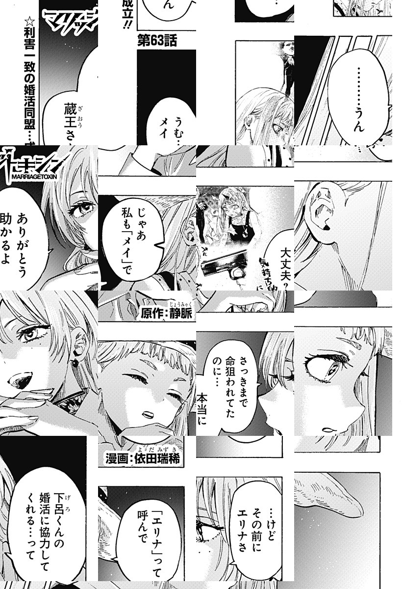 <毎週水曜更新!最新5話無料>2026年4月よりTVアニメ放送開始! 数百年続く殺し屋『毒使い』の青年・下呂。裏稼業に身を置き、女性が苦手な彼にとって結婚はするべきではないものだった。しかし、『毒使い』の血を絶えさせないため実家は彼の妹に対し、強制的に跡継ぎを産ませることを通告。そんな時、下呂は仕事のターゲットだった結婚詐欺師・城崎と出会い…!?「――そんな提案(プロポーズ)、初めて」結婚詐欺師をアドバイザーにした殺し屋の婚活が始まる!目指すは最高の結婚…世界一ハードな婚活バトルアクション!! [JC16巻発売中]