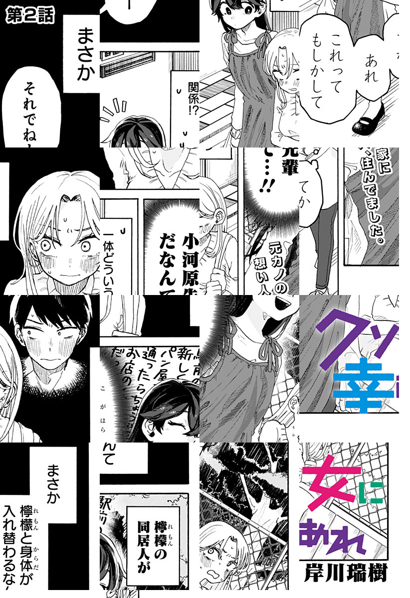 <毎週日曜更新!最新3話無料>「実は4股してるの ゴメンね」。中学生時代、人生で初めての彼女にヒドイ振られ方をした秋吉直(あきよし・すなお)。「もう誰かを好きになることなんてない」と思っていたが、大学生となり映画サークルの先輩に惹かれ始め…。だが、そんな折に自分を振った元カノと再会して…!? 入れ替わりすれ違いラブコメディ‼ [JC9巻発売中]