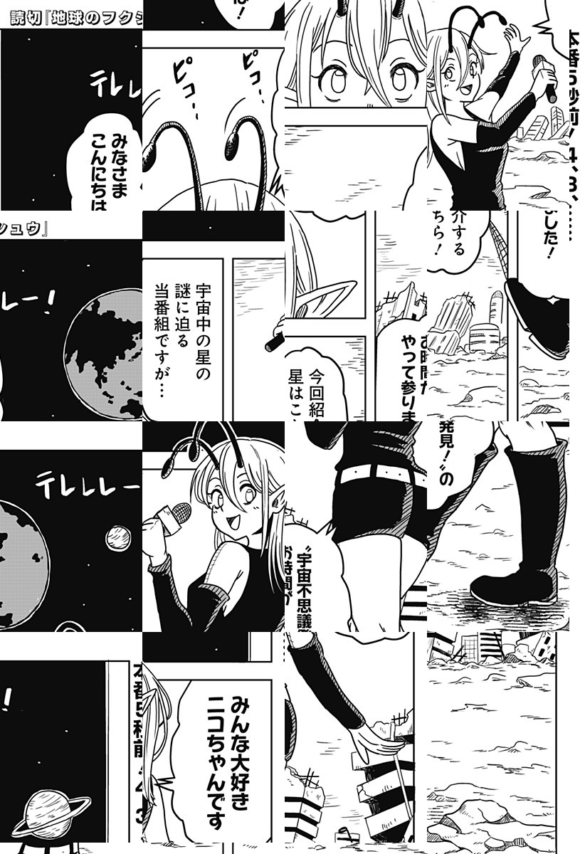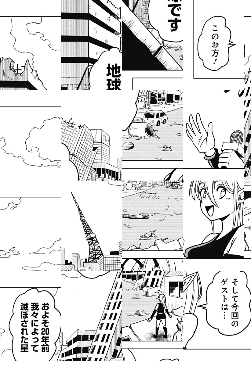20年前に滅びた星、“地球”を紹介する生放送がスタート! タール星人のキャスター・ニコを相手に、博士が解説をはじめるが……!?