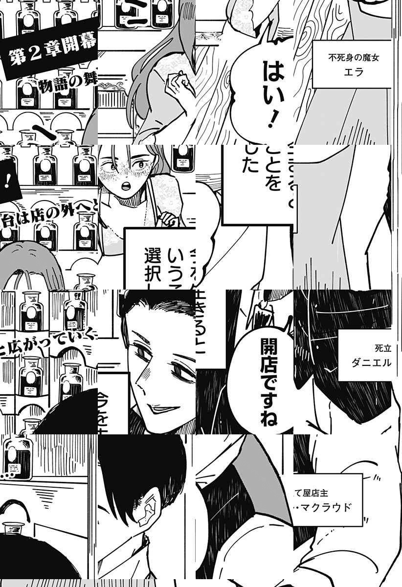 <完結済み>魔法使いに死を売る「マクラウド死立て屋」で、彼らが要望した死に方を実行し救済することが生きがいの店主。どんな魔法使いにも要望通りの死を売ってきた彼だったが、ある日どうしても死ねなくて困っていると一人の魔女が駆け込んできて…!?
