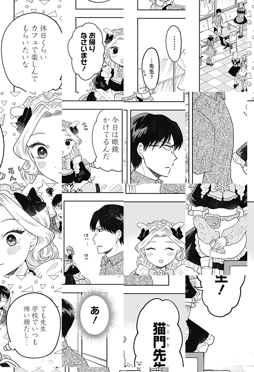 <完結済み>ド真面目な高校教師・猫門。姉を亡くし一人で暮らす彼は、ある日偶然メイド服を着た姉のチェキを見つけてしまう。姉の秘密を探るためコンカフェに出かけた猫門は、鶴子と名乗る少女と出会い…!?[JC全5巻発売中]