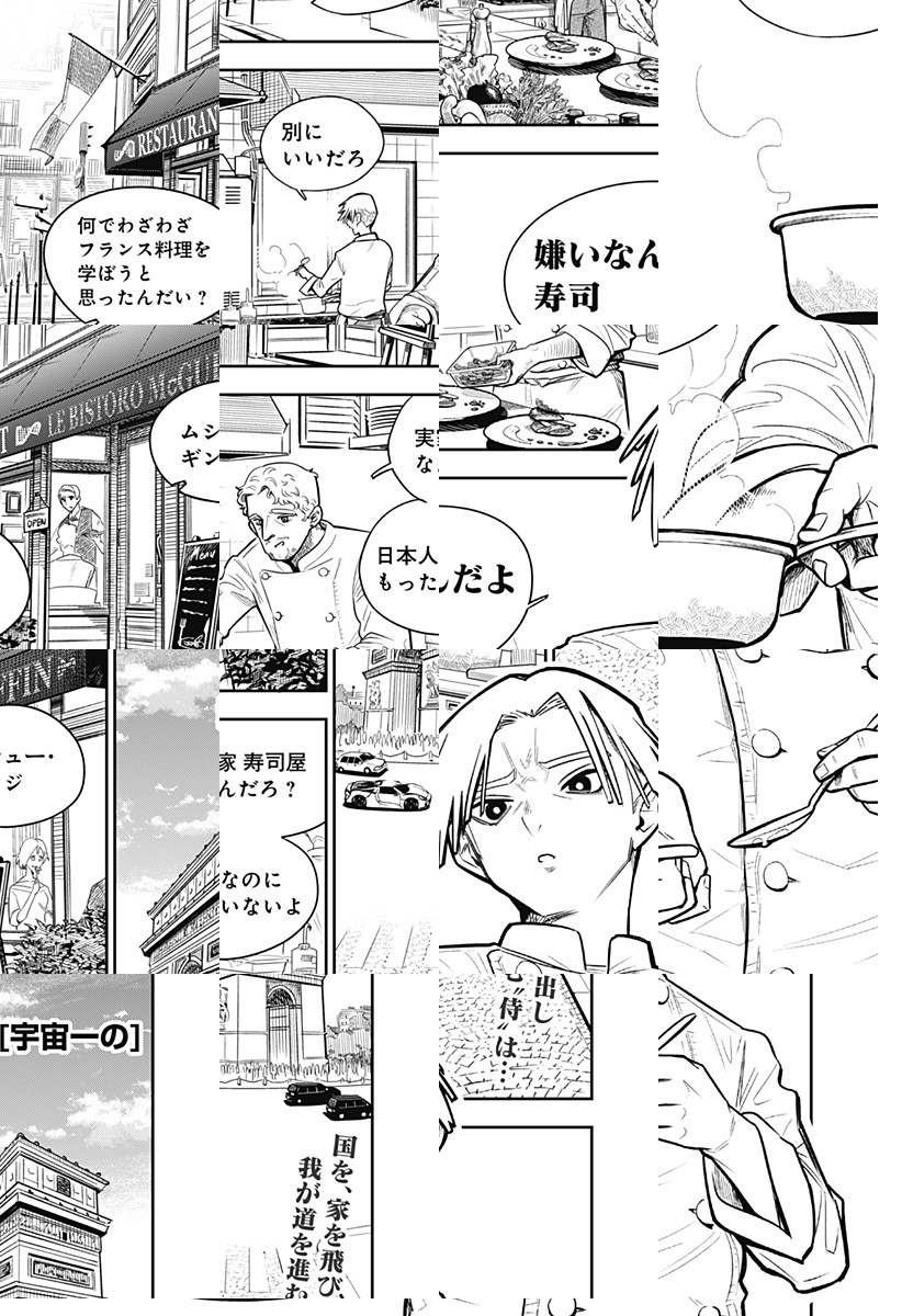 新進気鋭のフレンチレストランのシェフ・銀侍は、雑誌の記事に料理を酷評され、悩んでいた。そんなある日、若い頃喧嘩をして、没交渉だった実家の鮨屋から、連絡をもらうのだが……!?