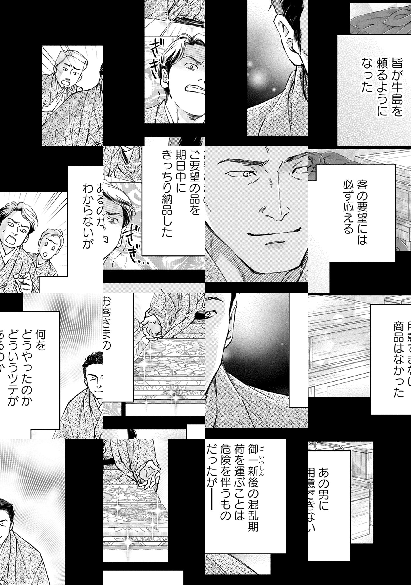 時は明治末。さびれた老舗呉服店に新風を巻き起こす、男たちの物語──。 かつて大きな賑わいを見せていた、老舗呉服店「三つ星」。その三男・星乃虎三郎が、三年ぶりに英国から帰国した。新しい「三つ星」を作ろうと意気込むものの、店の者からはまったく歓迎されず、変わらず優しいのは、長兄の存寅だけ。一方、虎三郎を知っているらしき、謎の男・鷹頭も、「三つ星」再建のため、独自に動いており…。
