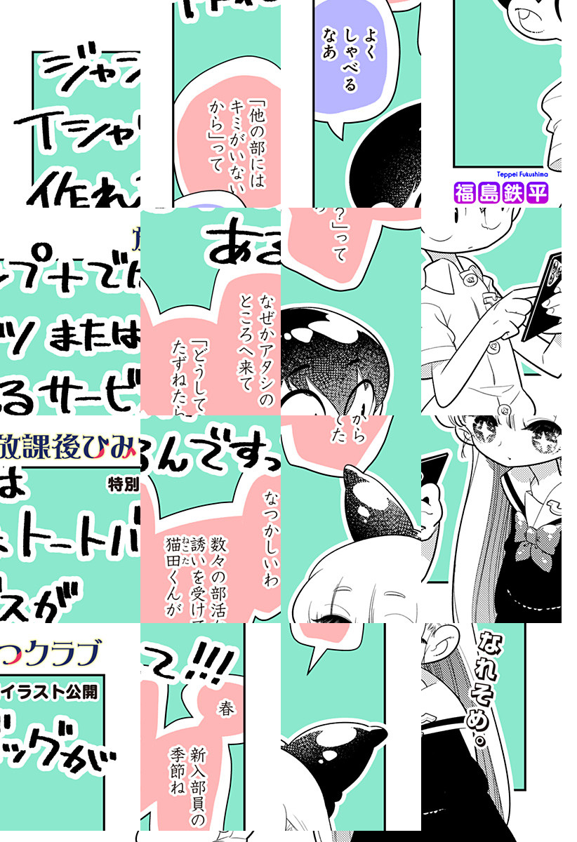 <完結済み>巨大学園都市「私立ユーカリの葉学園」に入学した猫田悠一。新生活に胸躍らせる彼は、学園の謎を探る少女・蟻ヶ崎千歳と出会う!二人は「放課後ひみつクラブ」を結成、今日も真実を求めて活動中! [JC全8巻発売中]