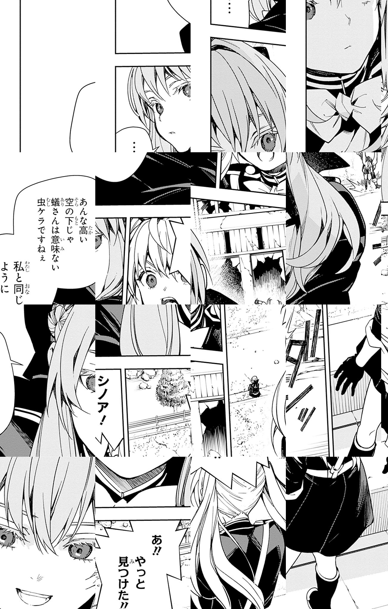 未知のウイルスにより人類は壊滅、子供だけが生き残り、地下都市で吸血鬼に支配されていた。百夜優一郎は仲間たちの犠牲のもと、ただ一人脱出に成功、復讐を誓う。