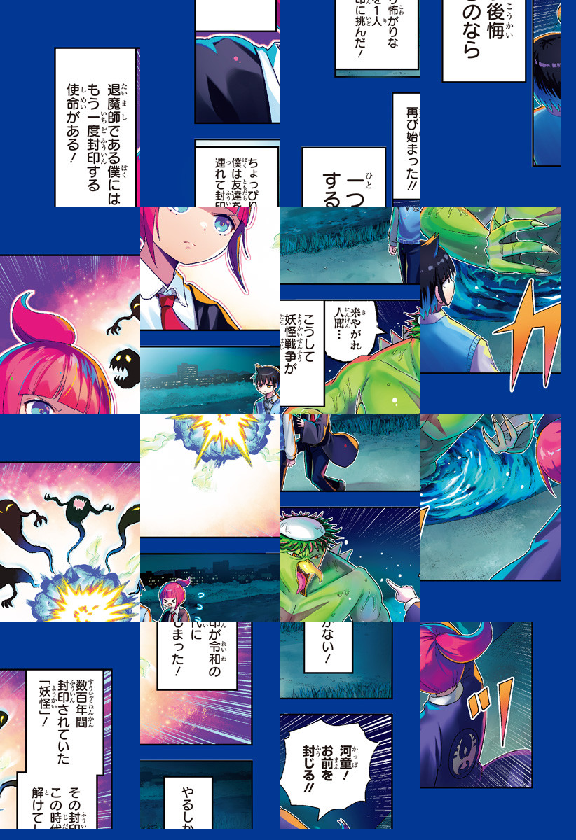 時は令和。数百年の封印から最恐の妖怪たちが目を覚ました。退魔師の紅院は、世界の平和を守るために立ち上がる!妖怪VS退魔師。今、始まる妖怪戦争──に、普通の高校生「村上」が参戦!?異才・伊原大貴最新作。超現代的退魔バトルコメディ!