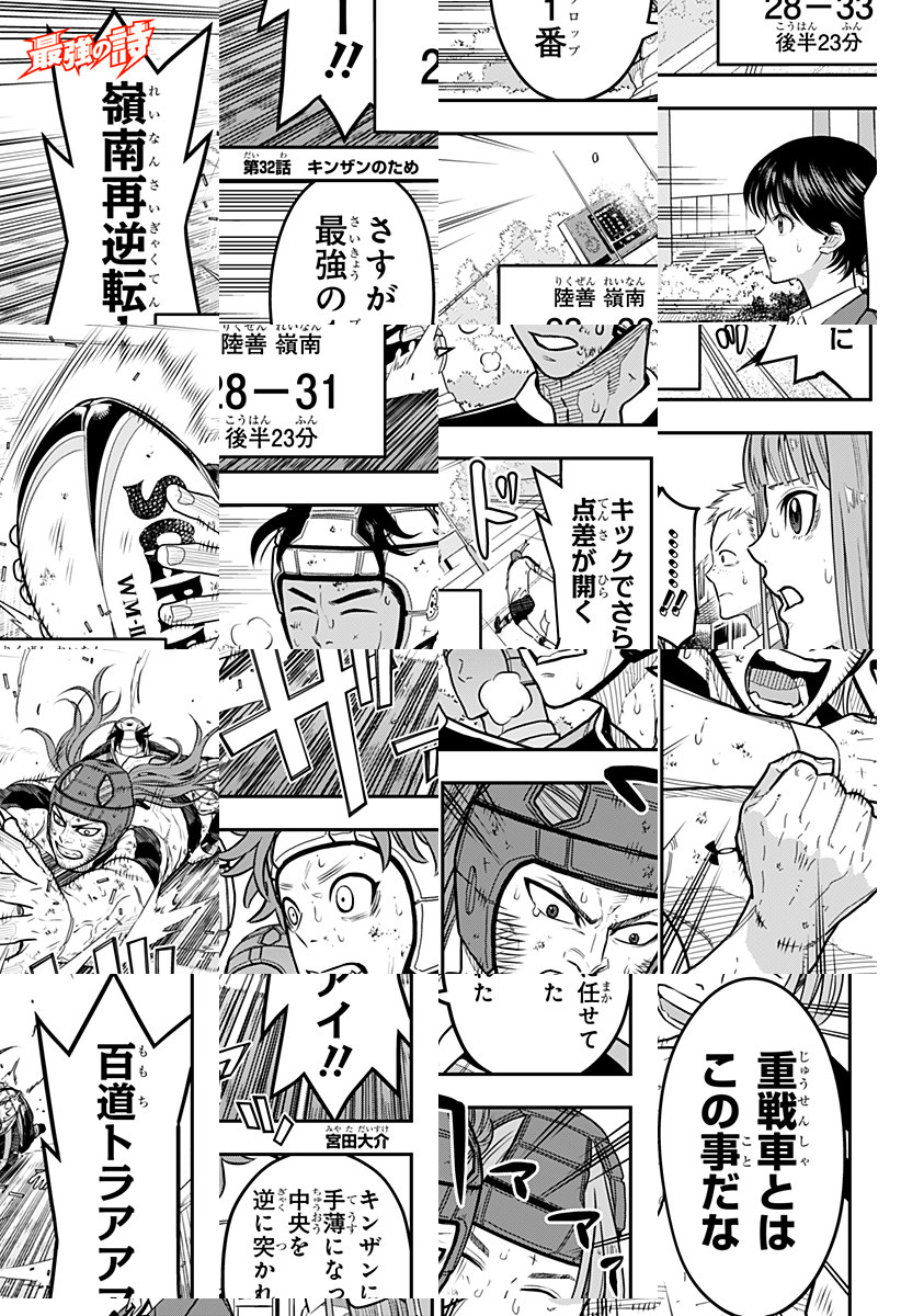 <完結済み>「完璧な一団(パーフェクト・スカッド)」と呼ばれたU-15日本ラグビー代表。この最強たちがいることで高校ラグビーのパワーバランスは大きく崩れていた。ここ陸善高校もまた勝つことを諦めたものたちの集まりだった。そこに、やってきた新入生・山田金山。彼の型破りなラグビーが高校ラグビー界を大きく揺るがすこととなる! [JC全7巻発売中]