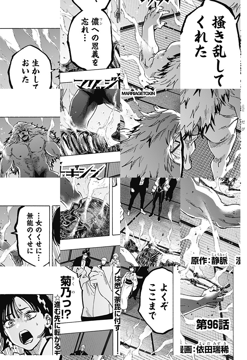 <毎週水曜更新!最新5話無料>2026年4月よりTVアニメ放送開始! 数百年続く殺し屋『毒使い』の青年・下呂。裏稼業に身を置き、女性が苦手な彼にとって結婚はするべきではないものだった。しかし、『毒使い』の血を絶えさせないため実家は彼の妹に対し、強制的に跡継ぎを産ませることを通告。そんな時、下呂は仕事のターゲットだった結婚詐欺師・城崎と出会い…!?「――そんな提案(プロポーズ)、初めて」結婚詐欺師をアドバイザーにした殺し屋の婚活が始まる!目指すは最高の結婚…世界一ハードな婚活バトルアクション!! [JC17巻4/3発売予定]