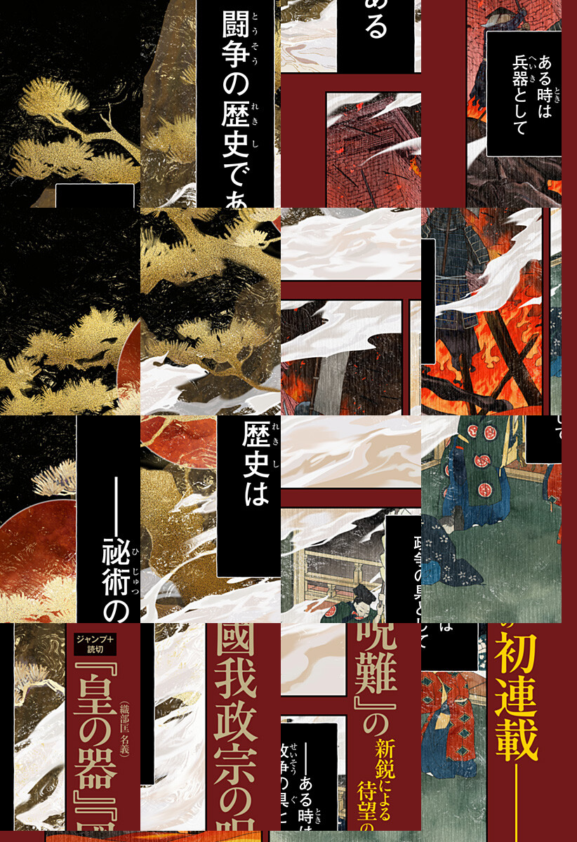 <金曜日更新!最新2話無料>ジャンプ+読切『皇の器』(織部匡 名義)、『國我政宗の呪難』の新鋭による待望の初連載作。圧倒的で筆致で描かれる祕術大河、ここに開幕――。 [JC4巻3/4発売]