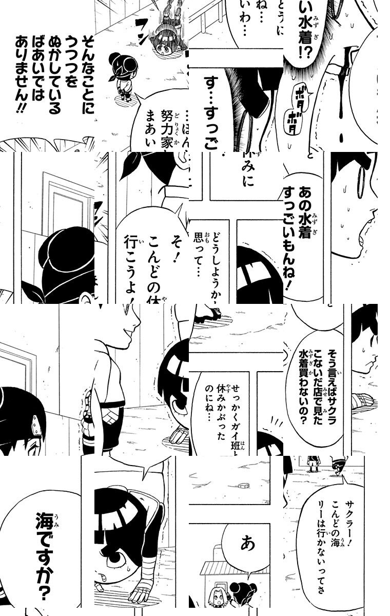 <完結済み>ゲジゲジまゆ毛がトレードマークの忍者、ロック・リーの目標は、『忍術が使えなくても立派な忍者になる!』。おなじガイ先生の班のテンテンやネジ、木ノ葉隠れの里の仲間と修業の日々。今日も元気に頑張ります!!