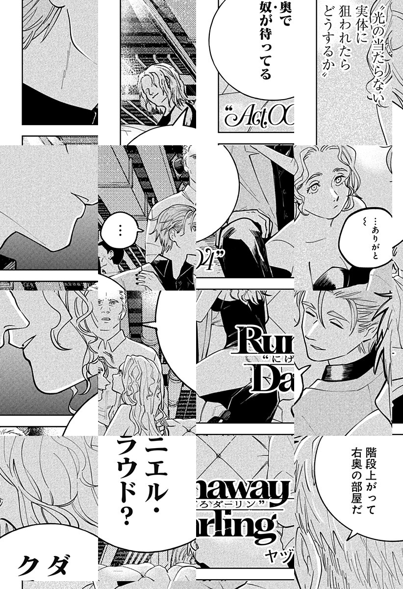 <完結済み>飄々として明るく女好きのダーリンは軟派な優男。だが、裏社会の住人達は知っている、怖れている、危ぶんでいる――ダーリンが現れたその瞬間に運命が急速に動き出すことを…!裏社会随一の【逃がし屋】が魅せる華麗なる逃走アクション劇! [JC全2巻発売中]
