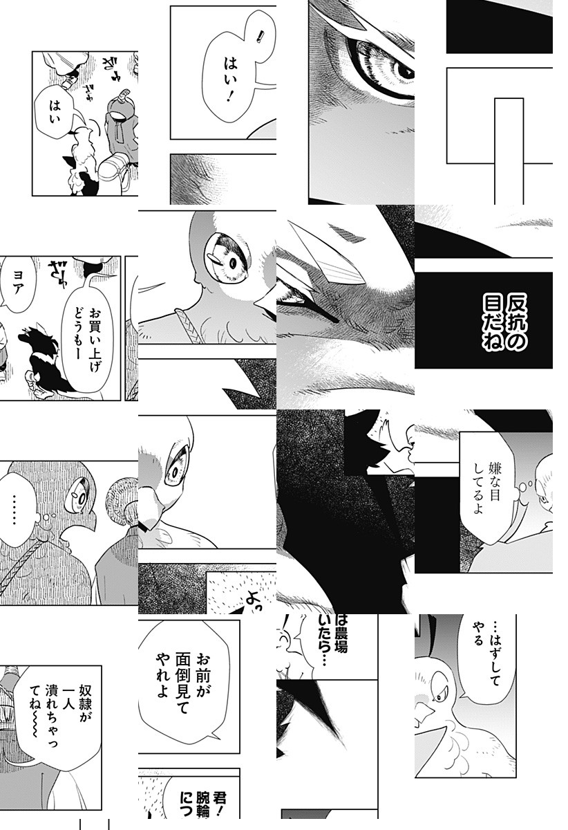 生まれながらの奴隷だった狼のカギ。彼は、物書きであり、かねてより自由を欲していた。そんな中、同じく奴隷である鳥・ヨアと出会う。ヨアは安寧と共に奴隷であることを是としており、カギと何度も対立するが――?