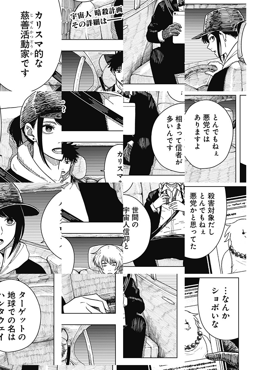 <毎週月曜更新>宇宙人が地球を救ってから、人間と宇宙人が共に住むようになった日本。工場で宇宙人の上司にこき使われるノマモトは、家族を宇宙人に殺されたという北見と出会う。仲を深める2人だが、ある日北見がとんでもないことをしてしまい… [JC5巻2/4発売]