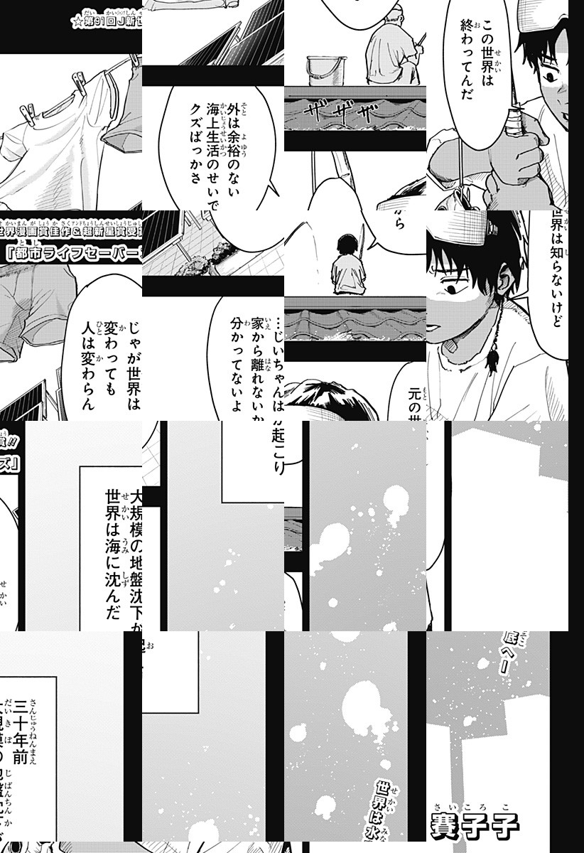 陸地の大半が海に沈んだ世界で放浪を続ける青年・ミミミ!ヒレを持ち、高い身体能力を有するミミミは立ち寄った街で住民とヤクザの抗争に巻き込まれる。激化する抗争の最中、暴走したサメが襲いかかってきて!?
