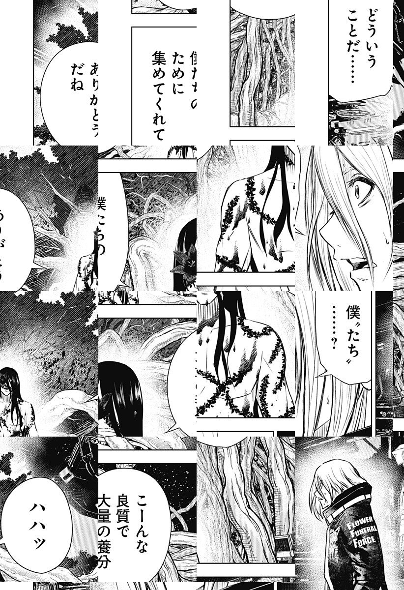 <完結済み>それは「人花」と呼ばれ、植物が人間を養分とする進化を遂げる。同時に大都会・東京は植物に覆われた。住む者は訳ありしかいないこの街で、キンゴとカヤノは本当の家族に憧れひっそりと暮らす。キンゴは誓う。人花になってしまったカヤノを人間に戻すと―――!! [JC全7巻発売中]