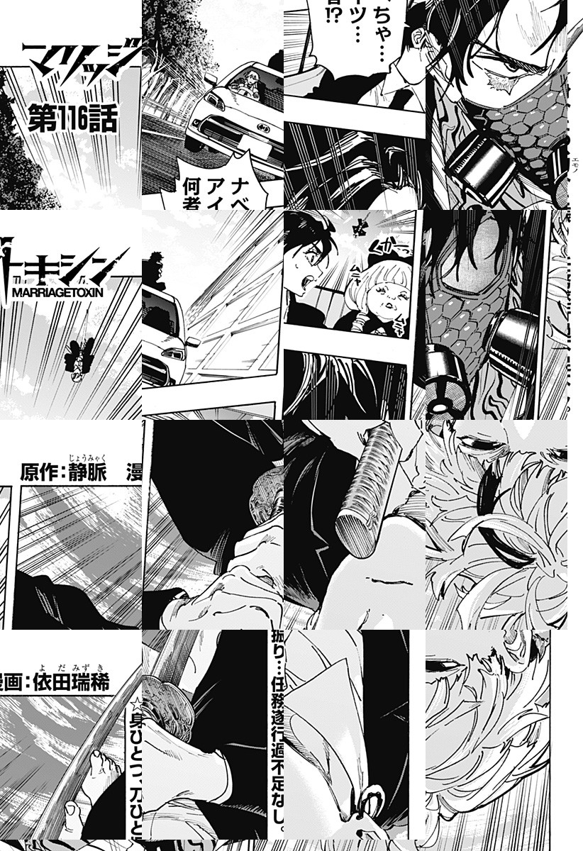 <毎週水曜更新!最新5話無料>2026年4月よりTVアニメ放送開始! 数百年続く殺し屋『毒使い』の青年・下呂。裏稼業に身を置き、女性が苦手な彼にとって結婚はするべきではないものだった。しかし、『毒使い』の血を絶えさせないため実家は彼の妹に対し、強制的に跡継ぎを産ませることを通告。そんな時、下呂は仕事のターゲットだった結婚詐欺師・城崎と出会い…!?「――そんな提案(プロポーズ)、初めて」結婚詐欺師をアドバイザーにした殺し屋の婚活が始まる!目指すは最高の結婚…世界一ハードな婚活バトルアクション!! [JC17巻4/3発売予定]