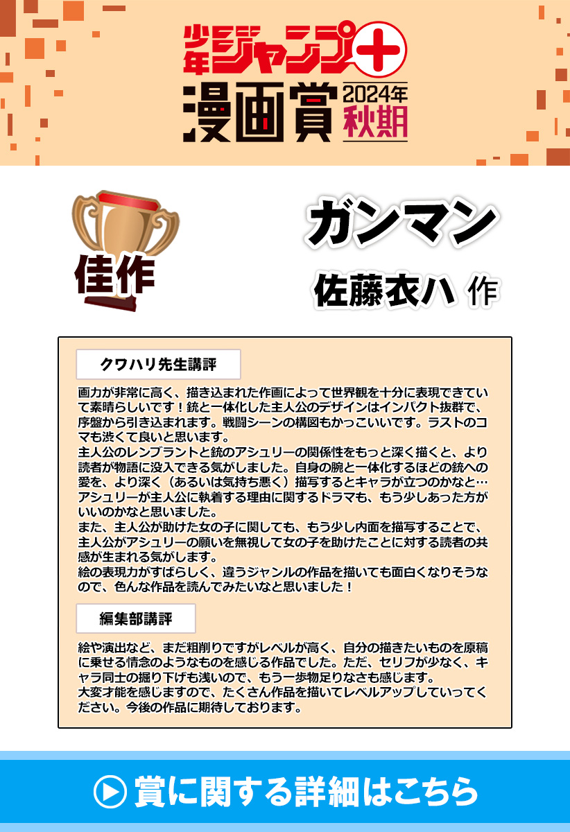 銃を愛する余り、銃と一体化したガンマンの恋物語。ジャンプ+漫画賞2024秋期佳作受賞作。