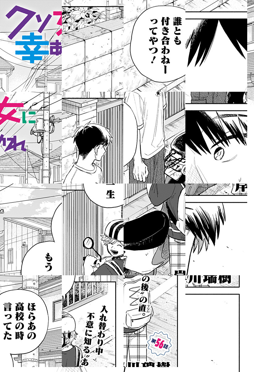 <毎週日曜更新!最新3話無料>「実は4股してるの ゴメンね」。中学生時代、人生で初めての彼女にヒドイ振られ方をした秋吉直(あきよし・すなお)。「もう誰かを好きになることなんてない」と思っていたが、大学生となり映画サークルの先輩に惹かれ始め…。だが、そんな折に自分を振った元カノと再会して…!? 入れ替わりすれ違いラブコメディ‼ [JC9巻発売中]