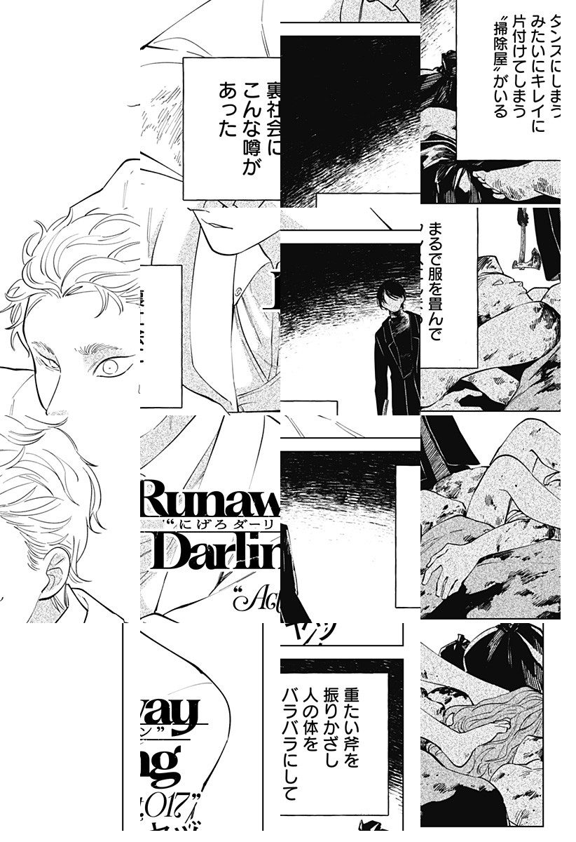 <完結済み>飄々として明るく女好きのダーリンは軟派な優男。だが、裏社会の住人達は知っている、怖れている、危ぶんでいる――ダーリンが現れたその瞬間に運命が急速に動き出すことを…!裏社会随一の【逃がし屋】が魅せる華麗なる逃走アクション劇! [JC全2巻発売中]