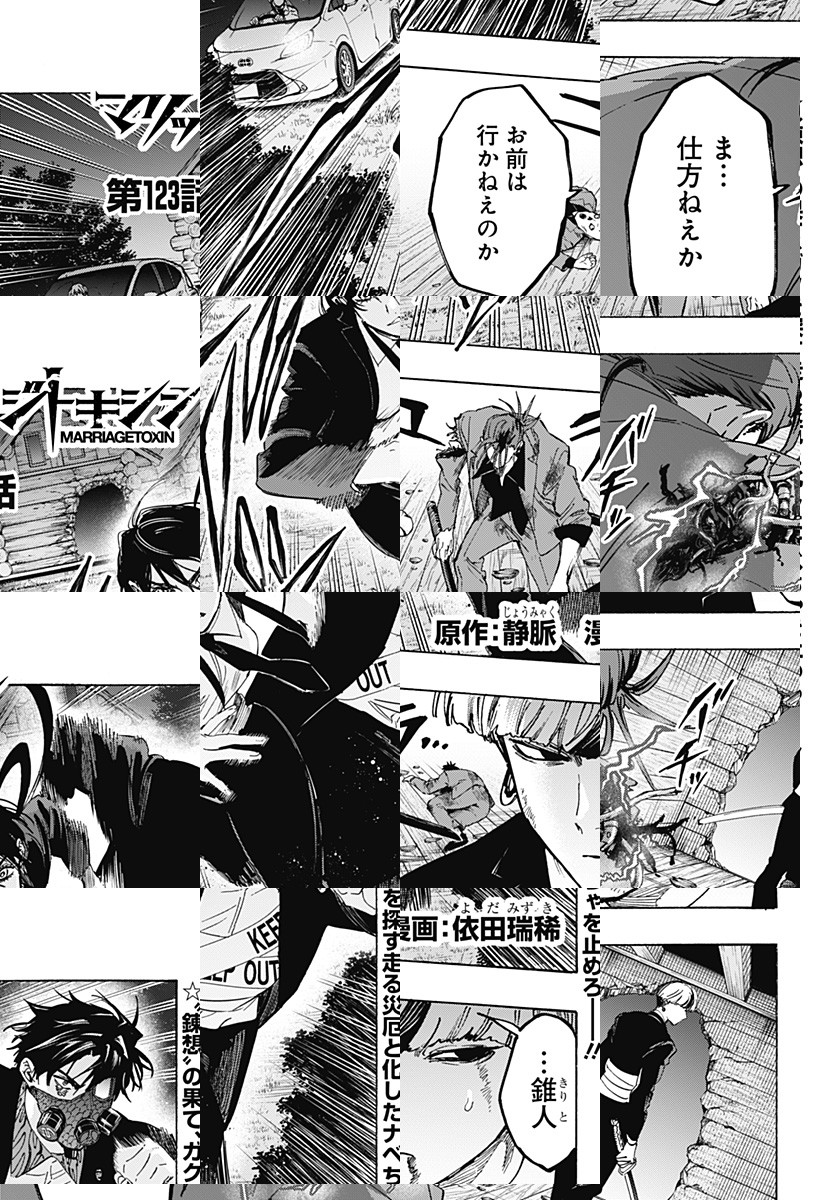 <毎週水曜更新!最新5話無料>2026年4月よりTVアニメ放送開始! 数百年続く殺し屋『毒使い』の青年・下呂。裏稼業に身を置き、女性が苦手な彼にとって結婚はするべきではないものだった。しかし、『毒使い』の血を絶えさせないため実家は彼の妹に対し、強制的に跡継ぎを産ませることを通告。そんな時、下呂は仕事のターゲットだった結婚詐欺師・城崎と出会い…!?「――そんな提案(プロポーズ)、初めて」結婚詐欺師をアドバイザーにした殺し屋の婚活が始まる!目指すは最高の結婚…世界一ハードな婚活バトルアクション!! [JC16巻発売中]