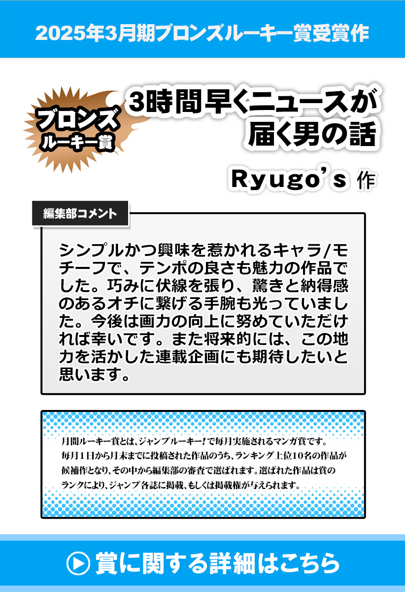 他人よりも3時間早く最新のニュースが届くサイト「NEOニュース」。ある日突然このサイトが使えるようになった秀才高校生・傑は、自分に都合がいいようにニュースを利用し始めるが…。