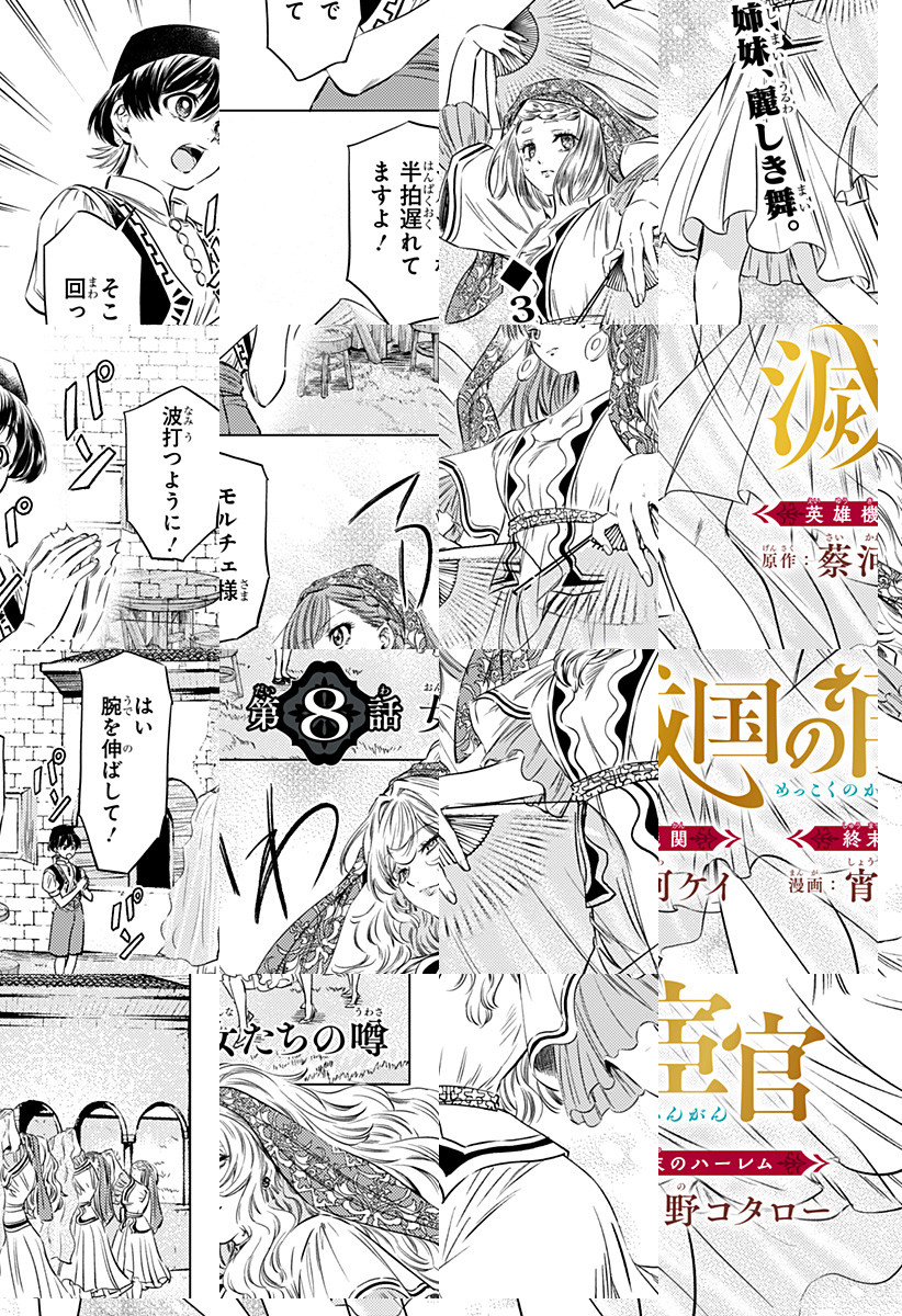 <完結済み>宦官。それは、秘密の花園・ハレムに仕えることが許された唯一の“男”。国を揺るがす大動乱は、若き宦官・ジャフェルと見目麗しき3姉妹の出会いから始まる…!『終末のハーレム』宵野コタローと『英雄機関』蔡河ケイの新タッグが紡ぐ、超美麗異国サスペンス! [JC3巻4/3発売予定]