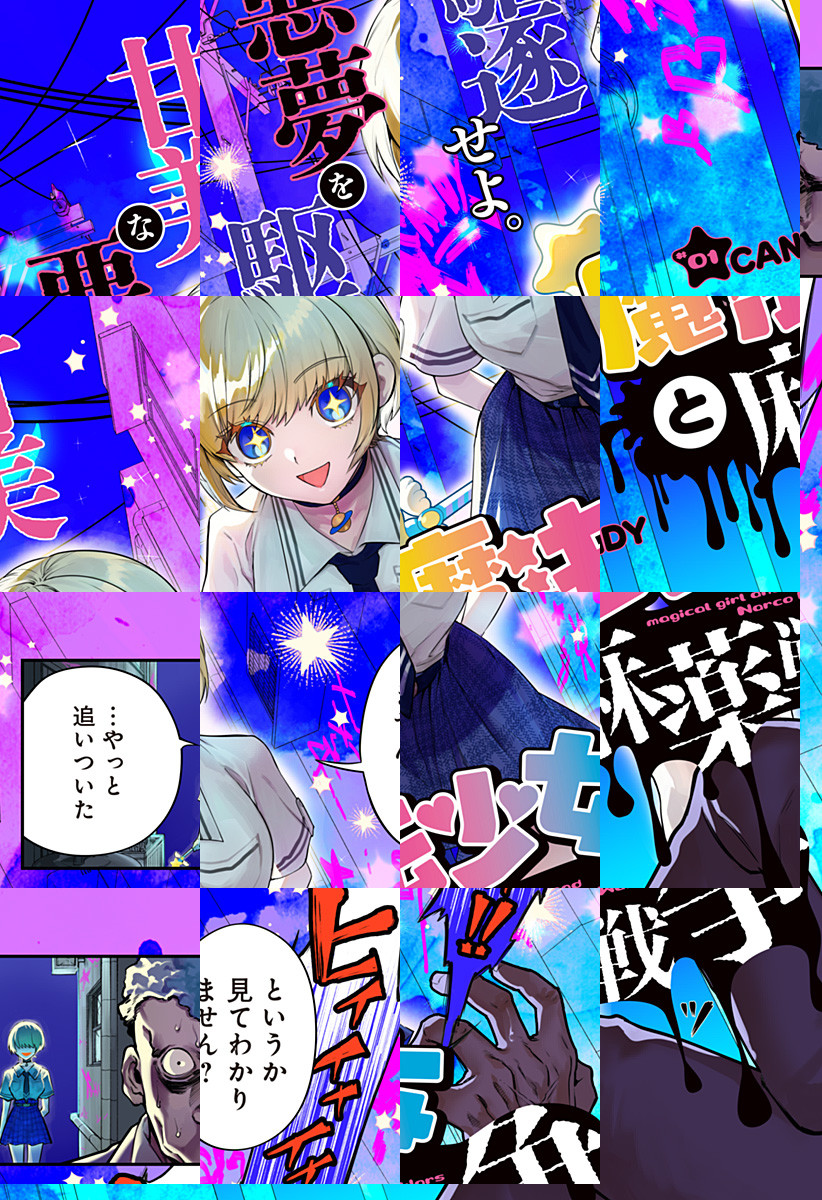 <隔週火曜更新>ただの砂糖が主成分の、謎に満ちた麻薬“キャンディ”が蔓延する東京。キャンディの製造者に迫るべく、ヤクザに潜入中の麻薬取締官・煤井の危機を救ったのは、自らを“魔法少女”と名乗る星名凛々だった―― [JC2巻3/4発売]