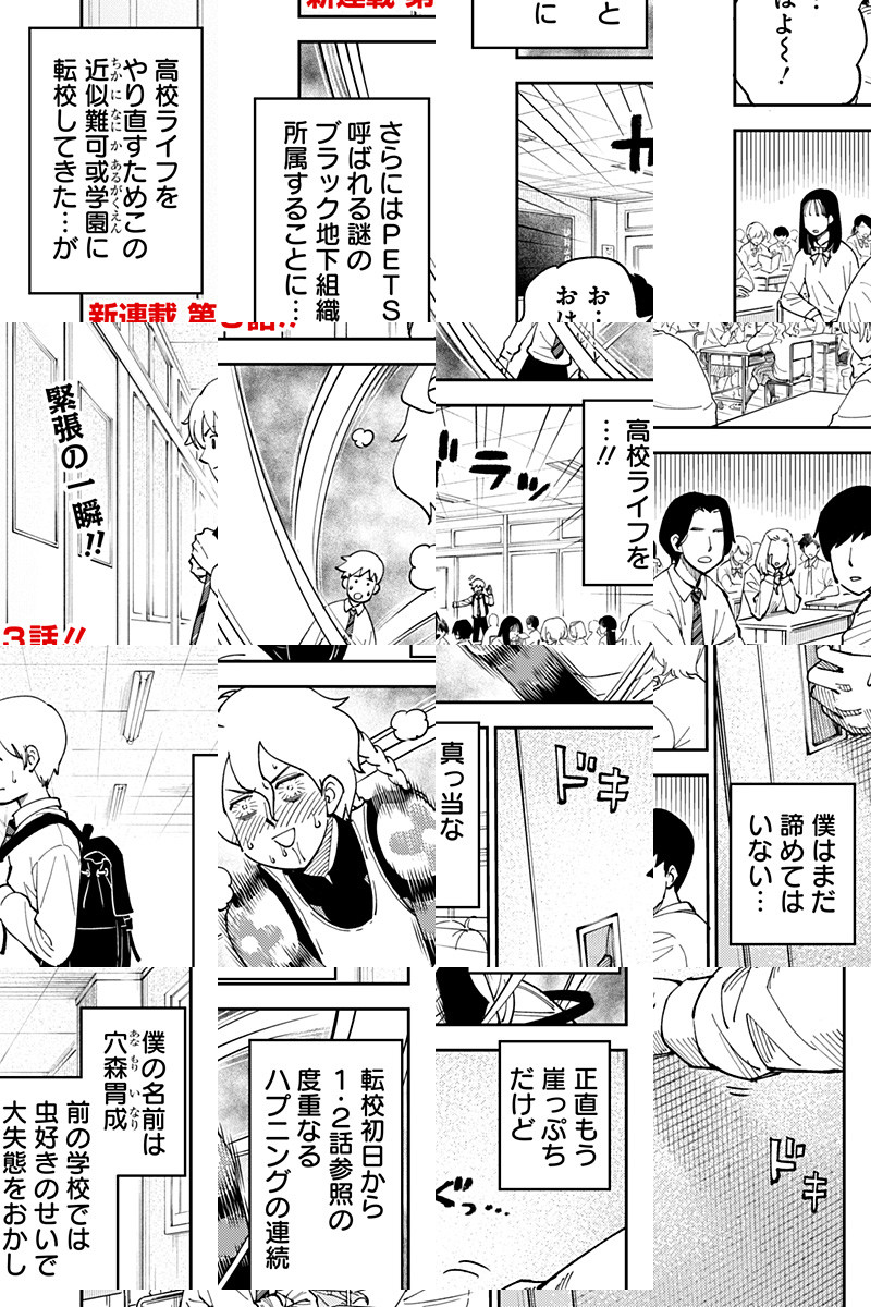 <隔週金曜更新>生き物大好きな少年、穴森胃成16歳。転校初日、森で出会った不思議生物に襲われるも謎の人間嫌い男、荒吐グンゼに助けられる。その出会いが穴森胃成を怒涛の学園生活へと巻き込んでいく!? うすた京介、渾身の不思議生物ギャグ開幕――!! [JC1巻発売中]