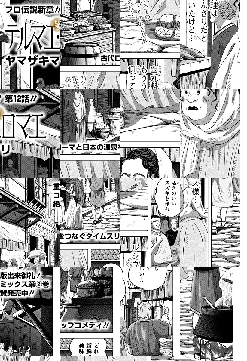 <月一火曜更新>紀元158年、ローマ帝国はアントニヌス・ピウスの統治下20年目。ローマの浴場設計士ルシウスは還暦を迎えて腰痛持ち、妻のさつきは謎の失踪、息子マリウスは理解不能…。さらに彼を悩ませるのはローマの風呂の仕事であったが!? [JC2巻発売中]