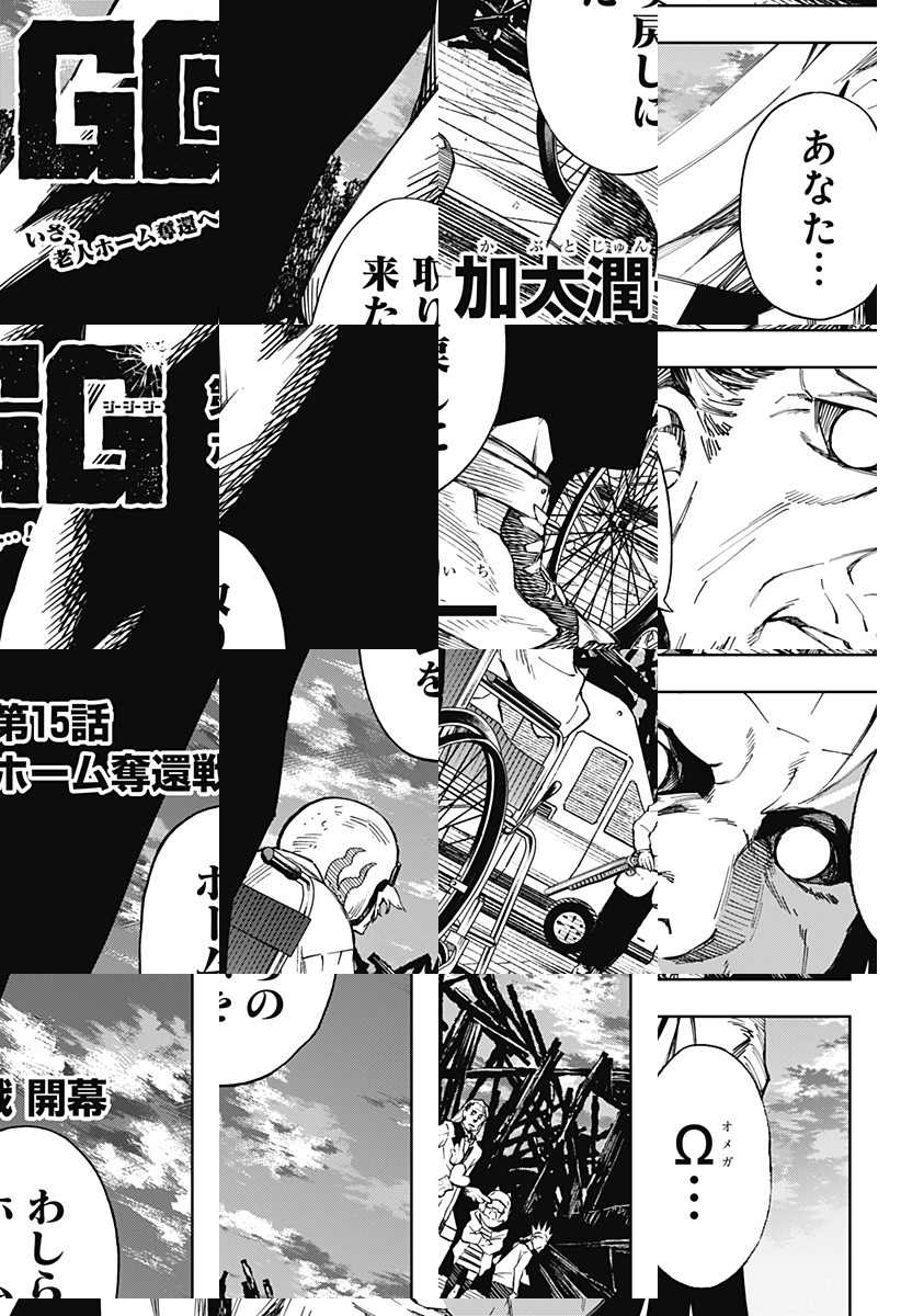 <完結済み>「伝説は、とある老人ホームにいるらしい――」とある老人ホームで介護職員として働くデンター。しかし実際は、マフィアで暴れる期待の若手だった。伝説の殺し屋Ωが潜んでいるという老人ホームに潜入し、1億ドルの報奨金を奪ってくるように命令されるデンターだが…!? [JC3巻4/3発売予定]