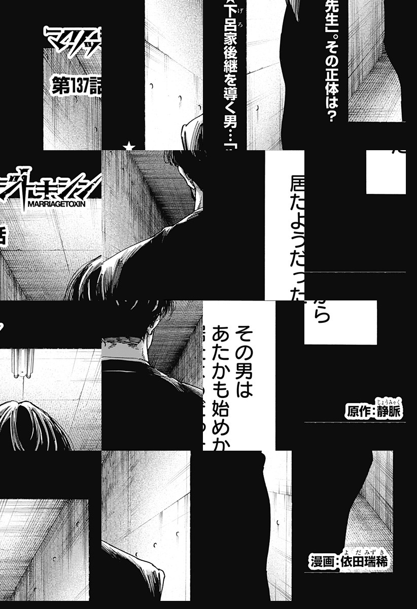 <毎週水曜更新!最新5話無料>2026年4月よりTVアニメ放送開始! 数百年続く殺し屋『毒使い』の青年・下呂。裏稼業に身を置き、女性が苦手な彼にとって結婚はするべきではないものだった。しかし、『毒使い』の血を絶えさせないため実家は彼の妹に対し、強制的に跡継ぎを産ませることを通告。そんな時、下呂は仕事のターゲットだった結婚詐欺師・城崎と出会い…!?「――そんな提案(プロポーズ)、初めて」結婚詐欺師をアドバイザーにした殺し屋の婚活が始まる!目指すは最高の結婚…世界一ハードな婚活バトルアクション!! [JC16巻発売中]