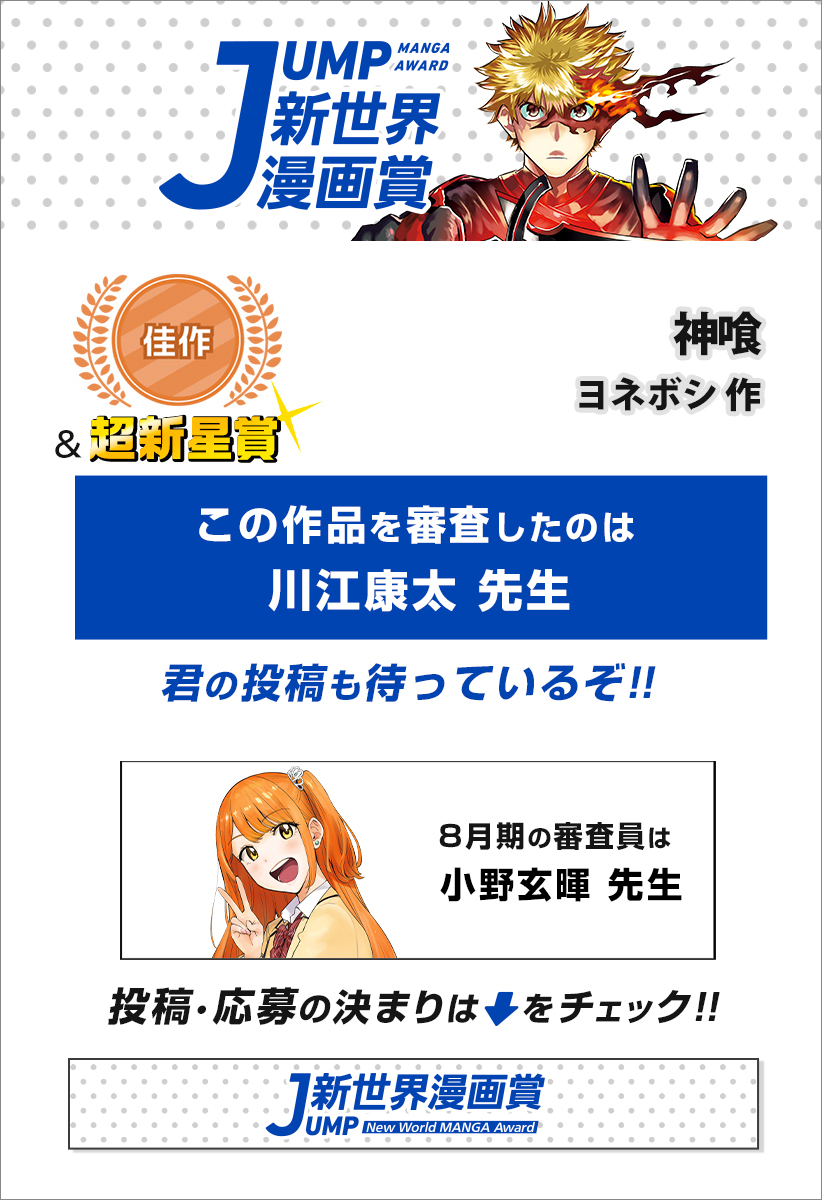 神様が人を喰う村。村人を守るため神様と戦い続ける龍志の前に、神様を喰うと言う男が現れて…!?新世界漫画賞佳作受賞のバトルアクション!